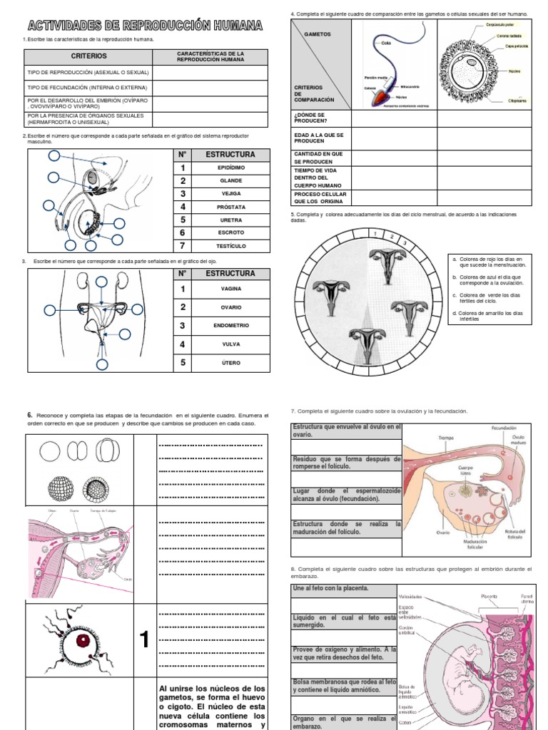 Reproduccion del Ser Humano para Sexto de Primaria Fichas Gratis